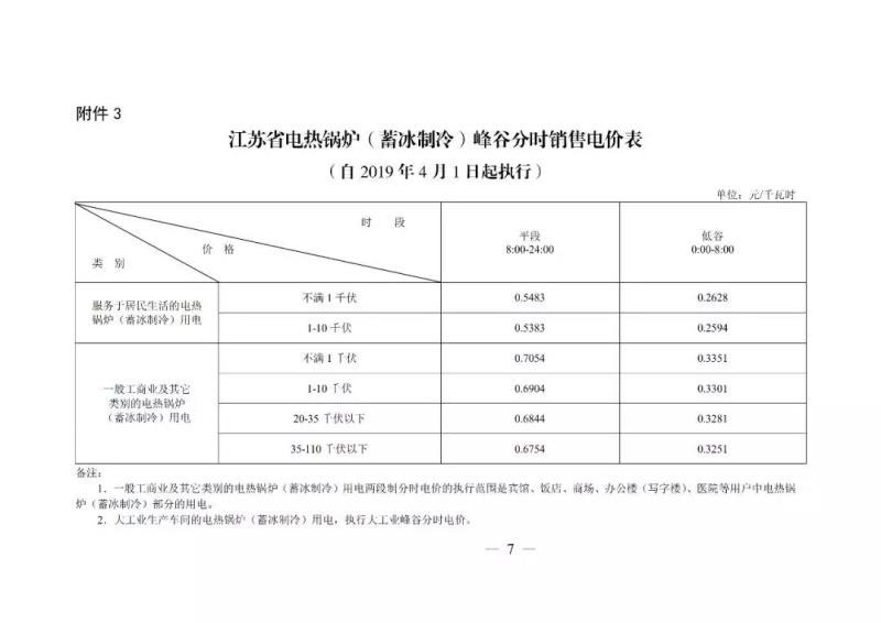 2019年4月1日起執(zhí)行的江蘇省電網(wǎng)銷售電價(jià)表。單位:元/KWh。