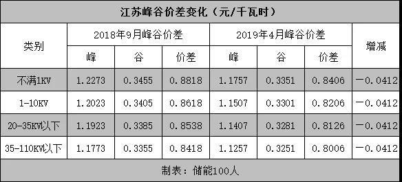 “儲(chǔ)能100人”發(fā)現(xiàn),在一般工商業(yè)電價(jià)下調(diào)的情況下,其峰價(jià)和谷價(jià)也發(fā)生改變。經(jīng)過(guò)測(cè)算,峰谷價(jià)差縮小了0.0412元/KWh,幅度超過(guò)此番電價(jià)下調(diào)的0.031元/KWh。據(jù)業(yè)內(nèi)人士反映,當(dāng)前江蘇用戶側(cè)儲(chǔ)能一些項(xiàng)目的盈利情況,也就是每度電幾分錢上下。