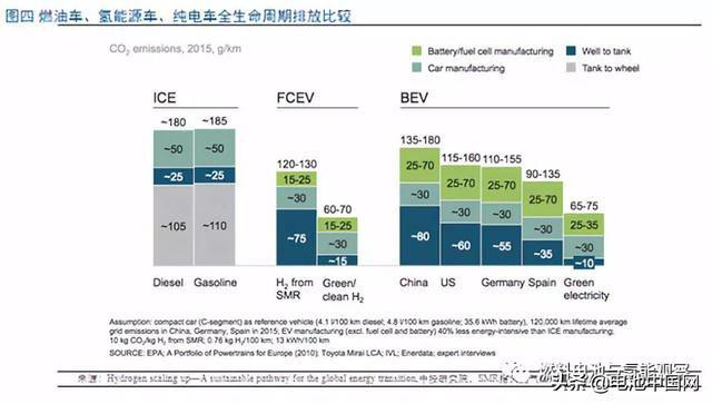 減排:氫燃料電池的反應(yīng)方程式非常簡(jiǎn)單:氫氣+氧氣→水。不僅沒(méi)有氮氧化物這種有毒氣體,連二氧化碳都沒(méi)有。當(dāng)然,與電動(dòng)車碳排放的爭(zhēng)議相似,從全生命周期的角度來(lái)看,發(fā)電或制氫是免不了有碳排放的。目前的主流觀點(diǎn)是:即便是考慮70%的火電,純電動(dòng)車的碳排放還是優(yōu)于燃油車,氫燃料電池車則與純電動(dòng)相當(dāng)或更好。