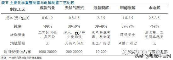 其中氯堿副產(chǎn)品制氫,由于是在現(xiàn)有氯堿工業(yè)體系中,收集原先直接排掉的副產(chǎn)品氫氣,對(duì)資源、環(huán)境不增加任何新的負(fù)擔(dān),且成本適中(1.3-1.5元/m3),所制取的氫氣純度高達(dá)99.99%,是目前較為適宜的制氫方式。但此種制氫方式受規(guī)模所限,無(wú)法滿足遠(yuǎn)期氫能源車放量后的需求。長(zhǎng)期來(lái)看,綜合考慮環(huán)保、成本等因素,除氯堿、電解制氫外的氫產(chǎn)能應(yīng)由化學(xué)重整制氫工藝滿足。
