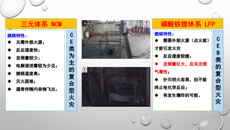 現(xiàn)在儲(chǔ)能用的更多的是磷酸鐵鋰電池,它的發(fā)煙量需要更多的關(guān)注,這種電池需要外部火源才可以起火。在儲(chǔ)能系統(tǒng)里面,這樣的風(fēng)險(xiǎn)是很高的。在我們的理念里面,一旦有一個(gè)電池發(fā)生了熱失控,這樣的儲(chǔ)能系統(tǒng)已經(jīng)處于一個(gè)崩潰的邊緣。電池內(nèi)部出現(xiàn)火花的概率非常高。用外部的火源可以證明磷酸鐵鋰電池不是大家想象的那么安全,其本質(zhì)是不安全的。