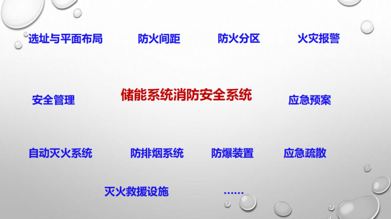 如何來做我們儲(chǔ)能系統(tǒng)的消防安全。有這么一些方面,首先設(shè)計(jì)可不可以做到安全還有標(biāo)準(zhǔn),鋰離子電池設(shè)計(jì)方面有欠缺的,從安全角度設(shè)計(jì)儲(chǔ)能的標(biāo)準(zhǔn),要努力去干。還有消防系統(tǒng),大家都在說有一些消防系統(tǒng),在一個(gè)集裝箱內(nèi)裝一個(gè)懸掛系統(tǒng),這就是我們說的消防系統(tǒng)嗎?我們認(rèn)為遠(yuǎn)遠(yuǎn)不夠,那你只是一個(gè)自動(dòng)滅火的裝置,我們消防系統(tǒng)是一個(gè)系統(tǒng),包括火災(zāi)報(bào)警自動(dòng)滅火,火災(zāi),爆炸的泄爆,這才是一個(gè)系統(tǒng),我們現(xiàn)在的考慮不夠。