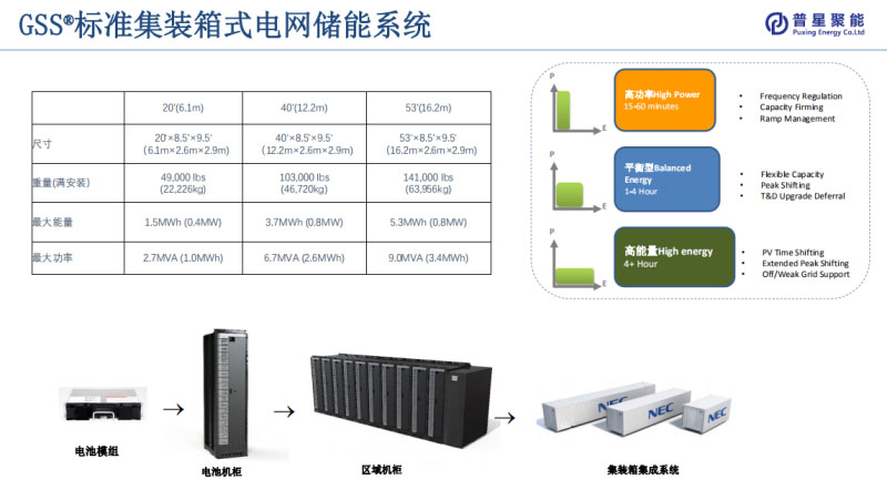 首先介紹一下普星聚能股份公司。普星聚能股份公司主要從事清潔能源的運營、管理和投資,是萬向公司旗下公司。公司于2002年在上海成立,注冊資金35億元人民幣。公司旗下還有上市公司以及清潔發(fā)電業(yè)務(wù)。借這個機會也介紹一下普星聚能的母公司萬向公司。萬向公司是總部位于杭州的一家汽車零部件制造企業(yè),現(xiàn)在萬向公司也在積極進行轉(zhuǎn)型,向能源科技型公司轉(zhuǎn)型。業(yè)務(wù)發(fā)展方向從目前來看主要是下面五個方面:第一個就是電動汽車,品牌是Karmar汽車;第二個是動力電池,就是萬向123電池,這是萬向在收購原美國A123系統(tǒng)公司基礎(chǔ)上整合和發(fā)展而來的;第三個就是電網(wǎng)儲能,這是今天要講的主要內(nèi)容,就是GSS®,這部分業(yè)務(wù)是與日本電氣NEC合資合作的;第四個就是清潔電力,這是香港的上市公司,還包括天然氣發(fā)電廠、風(fēng)力發(fā)電和光伏發(fā)電;最后一個是萬向創(chuàng)新聚能城,這是萬向的一個大項目,地點在杭州蕭山,上個月已經(jīng)啟動建設(shè),新聞和媒體都有報道,大家感興趣的話可以關(guān)注一下。