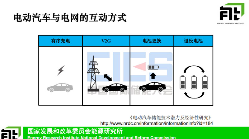 我們這里大致看一下就是電動(dòng)汽車與電網(wǎng)互動(dòng)的幾種典型的模式,電池更換還有這個(gè)第一類稍微有點(diǎn)不同,是一個(gè)單向的通過調(diào)節(jié)充電時(shí)間,去實(shí)現(xiàn)虛擬儲(chǔ)能的作用,后面幾種是電動(dòng)汽車跟電網(wǎng)雙向驅(qū)動(dòng)的模式,這個(gè)大家比較了解,不具體說了,這也是我們可能兩年前做的一個(gè)研究的,就是假設(shè)2030年有一億輛電動(dòng)汽車的規(guī)模,來評(píng)估幾種儲(chǔ)能方式,總的儲(chǔ)能的這樣能力。通過V2G這樣來講的話,可以提供5T瓦時(shí)的儲(chǔ)能能力這樣的規(guī)模的話差不多就是4倍這樣的規(guī)模,按照8小時(shí)的放電時(shí)間,1.5億千瓦的這種資源去評(píng)估的。