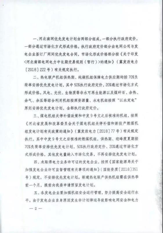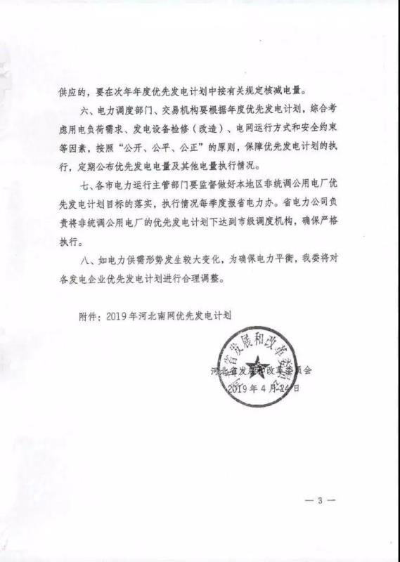 中國(guó)儲(chǔ)能網(wǎng)訊:近日,河北發(fā)改委下發(fā)《關(guān)于下達(dá)2019年河北南網(wǎng)優(yōu)先發(fā)電計(jì)劃的通知》提出,風(fēng)電、光伏、生物質(zhì)等非水可再生能源以及煤矸石、余熱、余氣、余壓等綜合利用機(jī)組按照資源量、水電機(jī)組按照“以水定電”原則安排優(yōu)先發(fā)電計(jì)劃,全部執(zhí)行政府定價(jià)。