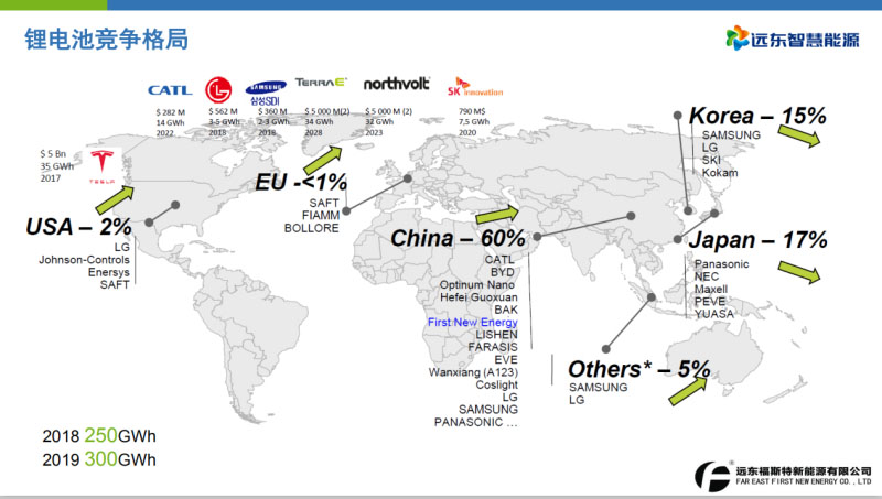 其實這是中汽協(xié)的研究數(shù)據(jù)。我們主要做乘用車,會達(dá)到5GWh的退役,正級材料將近10萬噸。我們先在儲能電站做一次應(yīng)用,最后再做到材料回收。這是整個鋰電池全球的競爭格局??梢钥匆幌轮袊剂巳虻?0%。歐洲這一塊對我們來說是一個很大的市場。歐洲用電池特別多,歐洲的電池廠只有1%不到。預(yù)計2018年去年整個全球的動力電池的產(chǎn)能是250GWh。2019年預(yù)計300GWh。關(guān)于儲能政策這幾年都是利好的,2019年,國家能源局這個級別的政策應(yīng)該有超過18個。這是動力電池3月26號出的動力電池的補(bǔ)貼政策,包括能耗包括密度,現(xiàn)在出來以后,250公里以下的車是沒有補(bǔ)貼的。要么就是400公里的要么就是250-400公里的才有補(bǔ)貼。能量密度只需要160Wh/kg就可以了。2019年之前的動力電池政策賣給汽車廠的電池包,基本上國補(bǔ)和地補(bǔ)能達(dá)到。但是現(xiàn)在地補(bǔ)沒有了,國補(bǔ)減半。這一塊對動力電池的刺激比較大。