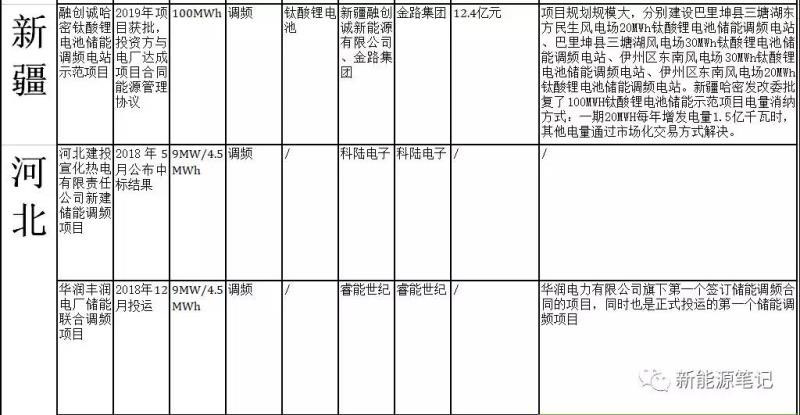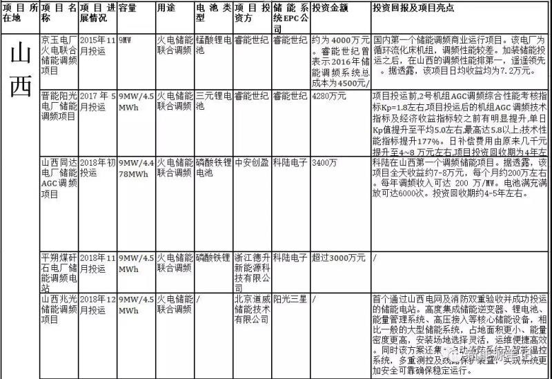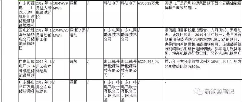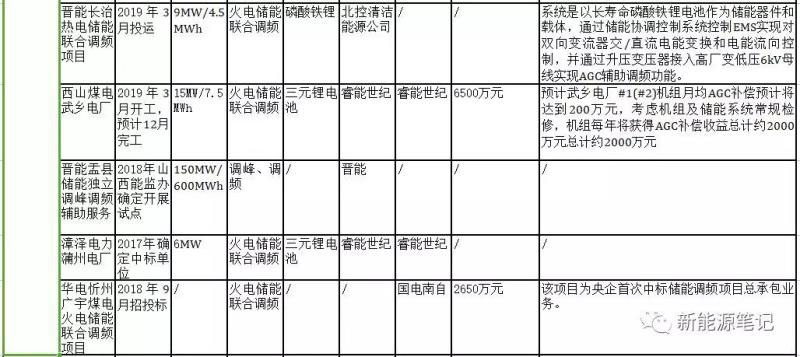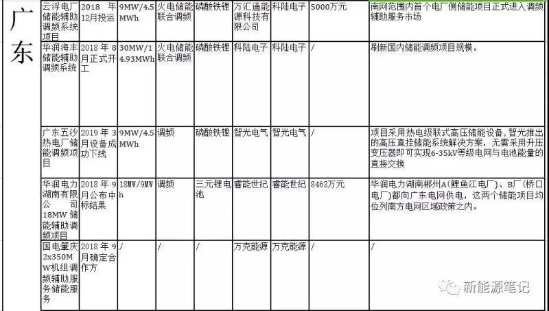 以下為截至2019年4月底的國內(nèi)儲(chǔ)能參與電力輔助服務(wù)(主要是調(diào)頻)的項(xiàng)目匯總:
