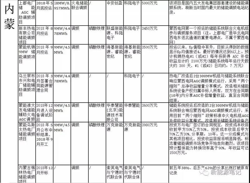 2018年下半年競爭開始變得激烈,參與方增加,此前主要是睿能世紀(jì)、科陸電子默默耕耘市場(chǎng),2018年北控、浙浙江德升新能源科技有限公司、智光電氣、萬克能源、華泰慧能、華潤、晉能等投資方進(jìn)入。發(fā)電側(cè)儲(chǔ)能調(diào)頻項(xiàng)目普遍采用合同能源管理方式進(jìn)行合作,電廠無需投資,項(xiàng)目投資方與電廠共享儲(chǔ)能調(diào)頻服務(wù)費(fèi),由于競爭激烈,分成比例逐漸向電廠傾斜,如蒙能烏斯太熱電廠儲(chǔ)能調(diào)頻項(xiàng)目,投資方與電廠簽訂的合同規(guī)定,投資成本收回收前甲方50%乙方50%,投資成本收回后甲方70%乙方30%,分享期為10年。內(nèi)蒙古錫林熱電廠儲(chǔ)能調(diào)頻項(xiàng)目更是以前五年38%、后五年62%的分享比例打破原有記錄。