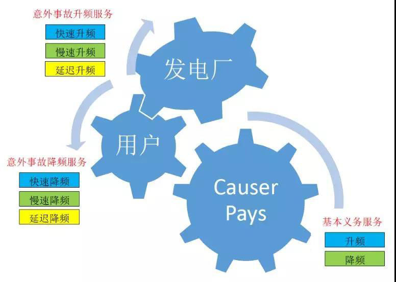 意外事故升頻服務(wù)(ContingencyRaiseServices)是針對系統(tǒng)中可能損失最大發(fā)電機(jī)組單位而制定的,分為快速升頻服務(wù)、慢速升頻服務(wù)和延遲升頻服務(wù),這些服務(wù)都是從發(fā)電廠收取費用。與此相對,意外事故降頻服務(wù)(ContingencyLowerServices)是針對最大負(fù)荷損失或者系統(tǒng)中傳輸線故障而制定的,三種服務(wù)均從用戶方收取費用?;玖x務(wù)服務(wù)也是按照“CauserPays”的原則向造成頻率偏離的企業(yè)或用戶收取費用。