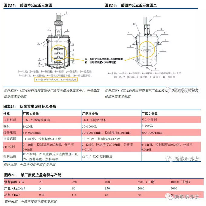 除生產(chǎn)工藝外,三元材料的性能和成本還與關(guān)鍵設(shè)備的選擇有關(guān)。前驅(qū)體的關(guān)鍵設(shè)備包括反應(yīng)釜、過(guò)濾和洗滌設(shè)備、干燥設(shè)備等。