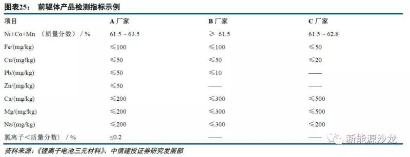 4)前驅(qū)體的元素配比直接決定正極材料的元素配比。不同鎳含量的正極材料需要嚴(yán)格對(duì)應(yīng)元素配比前驅(qū)體來(lái)生產(chǎn),比如333、523、622、811正極,分別需要對(duì)應(yīng)的333型、523型、622型、811型前驅(qū)體來(lái)完成生產(chǎn),前驅(qū)體元素配比失衡,將造成正極材料元素配比失衡,進(jìn)而導(dǎo)致鋰電池的容量、循環(huán)壽命收到影響。