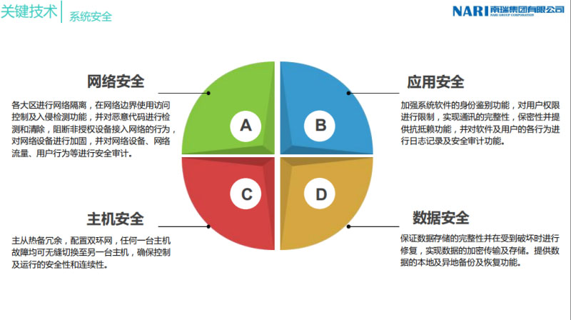 第四個(gè)是系統(tǒng)安全,在我們國家這個(gè)像烏克蘭或者就是委內(nèi)瑞拉的并路中間,導(dǎo)致的電網(wǎng)事故不允許發(fā)生的。在系統(tǒng)安全方面采用的四方面的技術(shù)手段,第一個(gè)是網(wǎng)絡(luò)安全方面,我們在網(wǎng)絡(luò)邊界使用這個(gè)訪問控制還有中心檢測功能,對于惡意代碼檢測清除,阻斷非法入侵。第二個(gè)在應(yīng)用安全方面,加強(qiáng)這個(gè)系統(tǒng)軟件的身份鑒別對于用戶的一些操作權(quán)限進(jìn)行了一些限制,同時(shí)實(shí)現(xiàn)通訊的完整性還有保密性。第三個(gè)主機(jī)的安全,都是采用雙網(wǎng)配置,通過這些配置主機(jī)無縫切換這樣確保實(shí)時(shí)控制系統(tǒng)的連續(xù)性和可靠性。數(shù)據(jù)安全方面,我們保證數(shù)據(jù)存儲(chǔ)的完整性和可恢復(fù)性數(shù)據(jù)發(fā)生破壞被破壞,出現(xiàn)問題的時(shí)候,可以及時(shí)恢復(fù),這是數(shù)據(jù)安全。這個(gè)是我們對于數(shù)據(jù)安全方面采取的數(shù)據(jù)分區(qū),這個(gè)也是符合我們國家能源局的一個(gè)規(guī)定。在數(shù)據(jù)采集區(qū),存儲(chǔ)處理區(qū)和發(fā)布區(qū)采用了軟件還有硬件的隔離措施,同時(shí)對于在數(shù)據(jù)傳出過程當(dāng)中有加密方法。