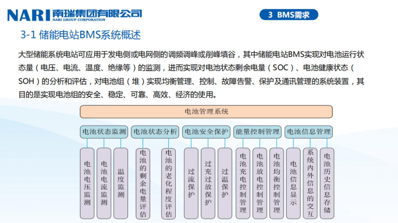 李欣:非常感謝大家,我們有機(jī)會跟大家交流一下。南瑞集團(tuán)對電網(wǎng)側(cè)儲能對電池本體和電池管理的需求。大家知道,我們參加儲能大會來說,電網(wǎng)側(cè)儲能目前是大家認(rèn)為是比較火熱的一個(gè)方向,具體來說對電池和管理系統(tǒng)有那些需求呢?