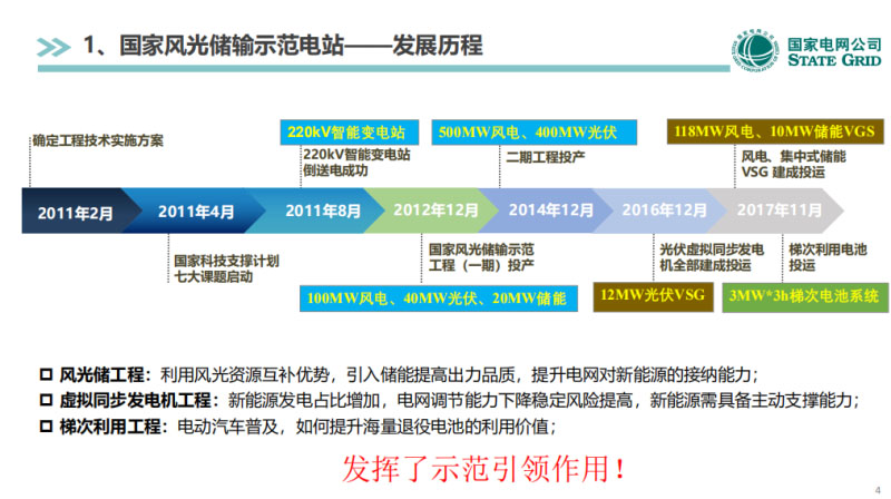 今天給大家匯報(bào)的內(nèi)容是三個(gè)部分,第一部分給大家講一下風(fēng)光儲(chǔ)這幾年運(yùn)行的情況,二和三是最近幾年我們在風(fēng)光儲(chǔ)做的一些工作。梯次利用的儲(chǔ)能系統(tǒng)以及新能源主動(dòng)支撐方面的應(yīng)用。風(fēng)光儲(chǔ)剛才給大家講了,從2009年開始工程開始啟動(dòng)建設(shè)。2011年一期工程投產(chǎn),2012年是二期工程投產(chǎn)。從2016年到現(xiàn)在做的就是動(dòng)力電池梯次利用的示范和虛擬同步機(jī)的示范。