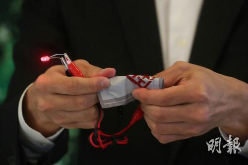 香港理工大學(xué)紡織及服裝學(xué)系團隊花3年時間,完成研發(fā)可折疊的織物鋰電池。圖片來源:香港《明報》/李紹昌 攝