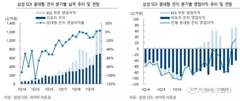 看下面這個圖,我們也可以理解為什么博世和SDI就動力電池業(yè)務(wù)要分家,在很長一段時間內(nèi),做動力電池是虧錢的,做ESS業(yè)務(wù)由于做得少也虧錢,在2017年Q2,SDI的ESS業(yè)務(wù)取得了利潤,開始大舉擴(kuò)張。