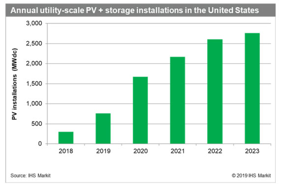 IHS Markit公司預計,從2019年到2023年,美國將有裝機容量超過2GW儲能系統(tǒng)與電網(wǎng)規(guī)模的太陽能發(fā)電(PV)系統(tǒng)配套部署。投資稅收抵免(ITC)與太陽能發(fā)電場結(jié)合儲能系統(tǒng)推動了過去一年市場發(fā)展,并將成為電網(wǎng)規(guī)模太陽能與儲能共址部署的主要驅(qū)動力。這些系統(tǒng)中大部分預計將部署在美國西部市場,其中包括夏威夷、加利福尼亞、亞利桑那州,從而使太陽能發(fā)電在相對飽和的市場中得到進一步整合。