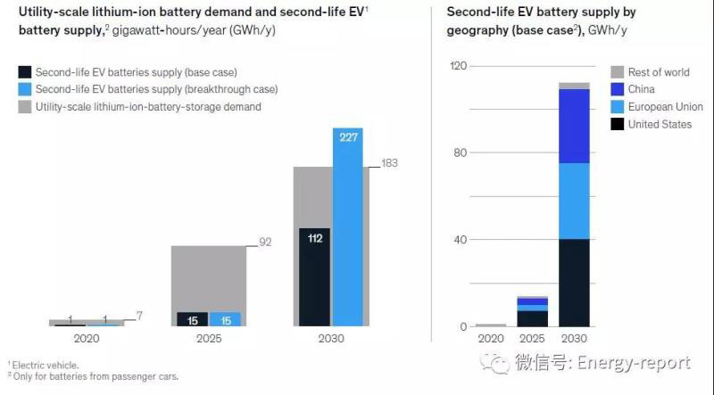 在接下來的幾十年中,電動汽車(EV)的強勁增長將導致電池的可用性達到太瓦時水平,電池將不只滿足電動汽車的使用要求。從這個角度來看,像美國這樣的國家在一整年中使用數(shù)太瓦時的電力,這是一個很大的儲能潛力。為這些仍然有用的電池找到應用場景可以創(chuàng)造巨大的價值,甚至最終有助于降低儲能成本,使可再生能源進一步接入我們的電網(wǎng)中。