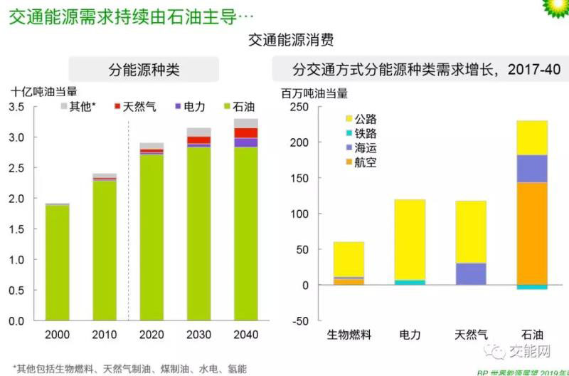 ● 展望期間石油需求在交通行業(yè)增長4百萬桶/日(2.2億噸油當量) ,其中大部分來自航空和海運,而非公路交通