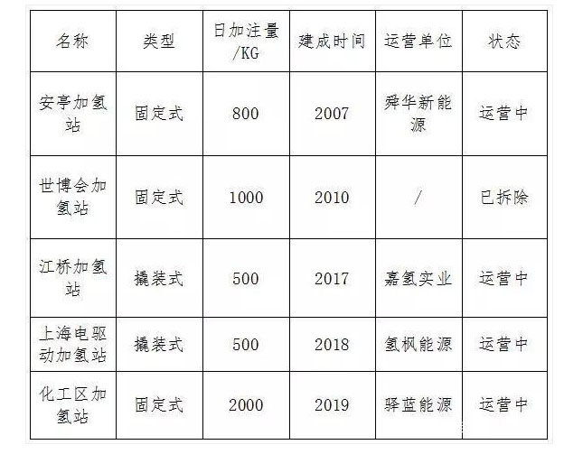 迄今為止,上海已經(jīng)建成 5 座加氫站,其中4座處于運營狀態(tài),一座已拆除。