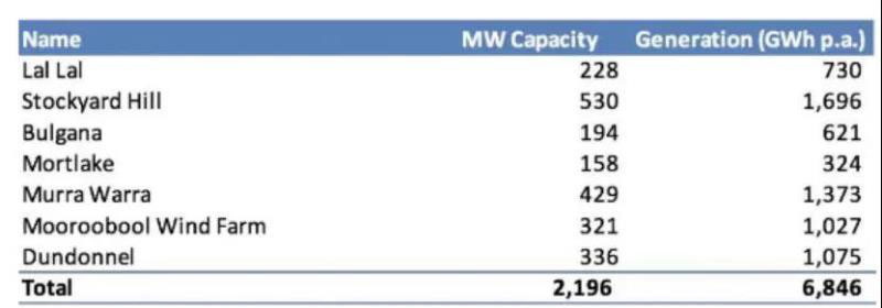 上表顯示地僅是一小部分的風(fēng)力發(fā)電裝機(jī),但這些風(fēng)力發(fā)電項(xiàng)目(2196MW)將可以滿足維多利亞州15%的年用電量,再加上由光伏發(fā)電提供的10%的發(fā)電量,維多利亞州每年電力來源的25%將由風(fēng)力發(fā)電和光伏發(fā)電提供。