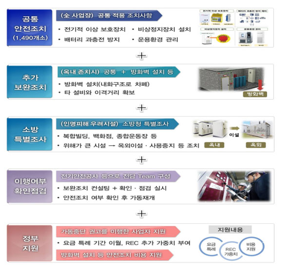2018年5月份開始火災(zāi)事故頻頻發(fā)生,產(chǎn)業(yè)部在優(yōu)先考慮國民安全的前提下,采取了現(xiàn)場實(shí)時調(diào)查,安全診斷,ESS設(shè)備全面停止等多方位的相應(yīng)措施。