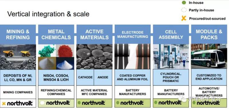 從Northvolt想做的事情來看,是從基礎(chǔ)到電芯制造和系統(tǒng)構(gòu)建的,某種意義上也是分階段一步步來做的,特別是最重要的電芯制造這塊。涉及到材料層面怎么做,可能現(xiàn)在也沒譜。