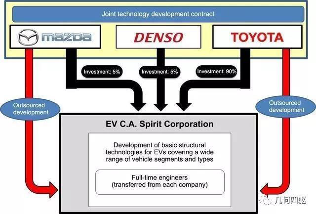 加上PPT上另外的三方:東芝,杰士湯淺(GS Yausa)和豐田自動織機,以及更早合作的松下達成合作意向的話,豐田便能夠確保在必要的時候快速擴充純電動汽車的產(chǎn)品線的能力,拓展全球市場。