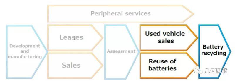 打開廉價電動車市場,提升電池的劣化性能,開拓全新電動車商業(yè)模式,幾板斧刀刀入骨。豐田章男親自參與并構(gòu)建的全新商業(yè)模式不可謂不雄心勃勃,涵蓋了全生態(tài)價值鏈:周邊服務、開發(fā)和制造、租賃和銷售、評估、二手車、電池再利用及電池回收。