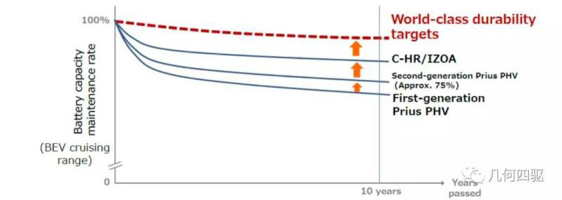 為達成這一目標,豐田另辟蹊徑,著重強調(diào)了電池的耐用度,即劣化性能,并將其當作一項重要的戰(zhàn)略。這項戰(zhàn)略的實施,將顯著降低電池的折舊成本。