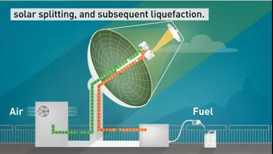 該裝置直接從空氣中提取二氧化碳和水,并使用太陽能對(duì)其進(jìn)行分解,得到包括氫氣和一氧化碳混合物在內(nèi)的合成氣,隨后將其加工成煤油、甲醇或其他烴類。
