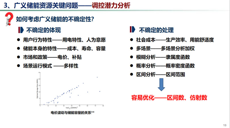 如何挖掘負荷側資源,我們提出廣義儲能資源概念,也就是說我們的目標還是儲能,但是這個儲能資源不能局限于實際儲能資源類型,例如電池儲能、飛輪儲能、超級電容儲能等電力儲能設備,我們還需要涵蓋更多的虛擬儲能資源類型,包括蓄熱式電鍋爐、電動汽車、樓宇建筑等多種DER資源。廣義儲能資源,這個“能”不是電能,是所有的能源,冷能、熱能、電能、氣能、蒸汽這些都是有儲能特性的,所以這才是我們真正努力拓展的環(huán)節(jié)。