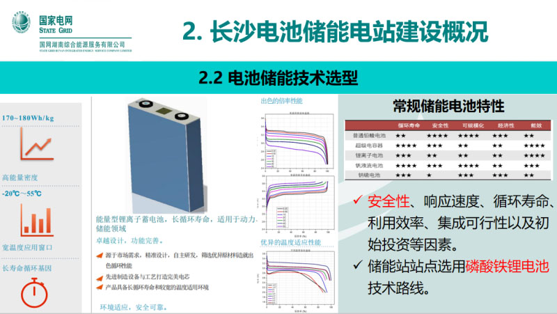 電池儲能技術(shù)的選型,考慮了江蘇和河南電網(wǎng)側(cè)的儲能電站的建設(shè)。現(xiàn)在,中國的儲能電池主要有鉛炭電池、鉛酸電池以及鋰電池,根據(jù)實地調(diào)研最終選擇了磷酸鐵鋰電池。磷酸鐵鋰電池安全性比較高,從響應(yīng)速度、循環(huán)壽命等綜合因素來看都是比較好的。
