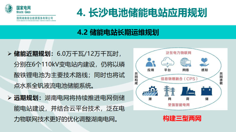 長沙儲能電站二期的工程建設(shè),也是60兆瓦、120兆瓦時,現(xiàn)在確定是建在6個110kv變電站周邊,主要采用磷酸鐵鋰技術(shù)路線,同時會試點全釩液流電池的儲能系統(tǒng)。因為現(xiàn)在全國都在做云平臺的技術(shù),泛在電力物聯(lián)網(wǎng),將來會結(jié)合這個技術(shù)做一個更大規(guī)模的聚合式的儲能電站,把儲能的電站利用到電網(wǎng)結(jié)構(gòu)的調(diào)整上面來。