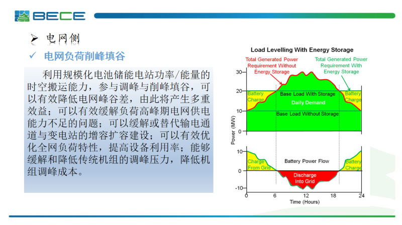 電網(wǎng)側(cè)的主要應(yīng)用場(chǎng)景第一是電網(wǎng)負(fù)荷削峰填谷,利用的還是儲(chǔ)能系統(tǒng)的功率和能量的時(shí)空搬運(yùn)能力,削峰填谷,一是可以實(shí)現(xiàn)峰谷差的套利,第二可以有效緩解負(fù)荷高峰期電網(wǎng)供電能力不足的問題,緩解電網(wǎng)的擴(kuò)建增容的問題。同時(shí)我們可以優(yōu)化電網(wǎng)的負(fù)荷特性,提高設(shè)備的利用率,最終還是降低傳統(tǒng)機(jī)組的調(diào)峰壓力,降低我們的調(diào)峰成本。