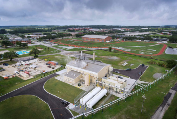 Ameresco公司在項目建設中,建設一座裝機容量為3.5MW熱電聯(lián)產(chǎn)(CHP)發(fā)電廠和部署三臺柴油發(fā)電機替換老化的發(fā)電廠,用于備用發(fā)電,并在車庫和地面安裝20,000個太陽能電池板,其裝機總容量為5.5MW。