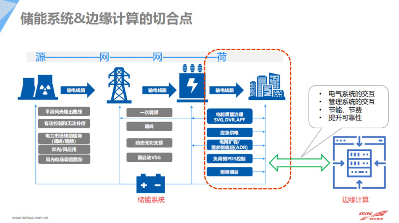 我們看這兩個(gè)結(jié)合的點(diǎn)。儲(chǔ)能的源、網(wǎng)、荷,荷也就是用戶側(cè),怎么跟邊緣數(shù)據(jù)中心結(jié)合,這里面包括了電氣的融合、二次管理系統(tǒng)的融合,還有怎么進(jìn)行節(jié)能、節(jié)費(fèi)以及提升可靠性,這是儲(chǔ)能和邊緣數(shù)據(jù)中心目前可結(jié)合的地方。