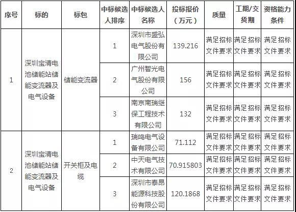 中國儲能網(wǎng)訊:深圳寶清電池儲能電站擴(kuò)建工程儲能變流器及電氣設(shè)備采購項(xiàng)目中標(biāo)公示,盛弘電氣139.216萬元中標(biāo)儲能變流器采購,第二第三候選人為智光電氣和南瑞繼保,瑞鳴電氣中標(biāo)開關(guān)柜及電纜采購。