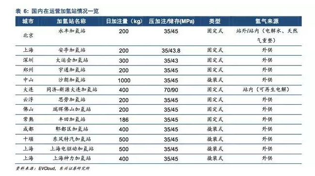 國內(nèi)截止2018年上半年在運營的加氫站僅有14座,其中6座位撬裝式,占世界加氫站總數(shù)的2%。主要為示范項目為基礎(chǔ)存續(xù)下來的加氫站,日加注量主要是500kg以下,且加注壓力主要為35Mpa,僅大連新源動力加氫站加注壓力為70Mpa。