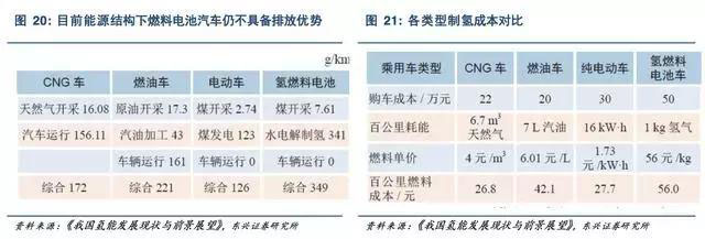 以目前的能源消費結(jié)構(gòu)(煤電占比為69%)來看,水電解制氫在燃料電池全生命周期仍不具備排放優(yōu)勢,根據(jù)國家發(fā)改委能源研究所測算,若未來國內(nèi)煤電比例降至20%,水電解制氫全生命周期排放將顯著低于汽油車排放。