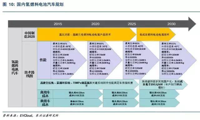 根據(jù)此前國家發(fā)布的燃料電池技術(shù)路線圖,燃料電池產(chǎn)業(yè)要發(fā)展以城市私人用車、公共服務(wù)用車的批量應(yīng)用為主,逐步實現(xiàn)燃料電池汽車產(chǎn)業(yè)的商業(yè)化推廣。根據(jù)規(guī)劃,氫燃料電池汽車要在2020年實現(xiàn)5000輛規(guī)模示范應(yīng)用,2025年達(dá)到5萬輛的規(guī)劃,2030年實現(xiàn)百萬輛規(guī)模的商業(yè)推廣。