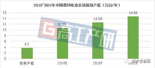 根據(jù)高工產(chǎn)研氫電研究所(GGII)統(tǒng)計,截至2019年6月,國內(nèi)氫燃料電池系統(tǒng)現(xiàn)有產(chǎn)能約為37000臺/年。根據(jù)各企業(yè)的發(fā)展規(guī)劃,GGII預(yù)計,2021年國內(nèi)氫燃料電池產(chǎn)能將達(dá)到14.65萬臺/年。