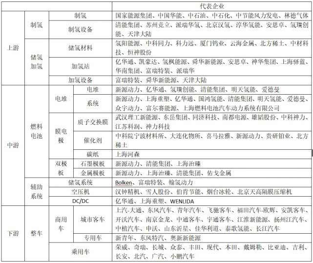 表2:氫能全產(chǎn)業(yè)鏈分布及代表企業(yè)