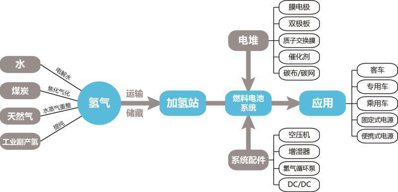 沉寂在高中化學(xué)教科書里被冠以“人類終極能源”的氫能,終于以這樣的形式走入千家萬戶的視野。面對氫能全產(chǎn)業(yè)鏈這個(gè)無比龐大的蛋糕,從上游的氫氣制取和儲(chǔ)運(yùn)、加氫站等基礎(chǔ)設(shè)施、到中游的氫燃料電池、再到最終端的汽車制造,目光所及之處,一片繁華熱鬧。