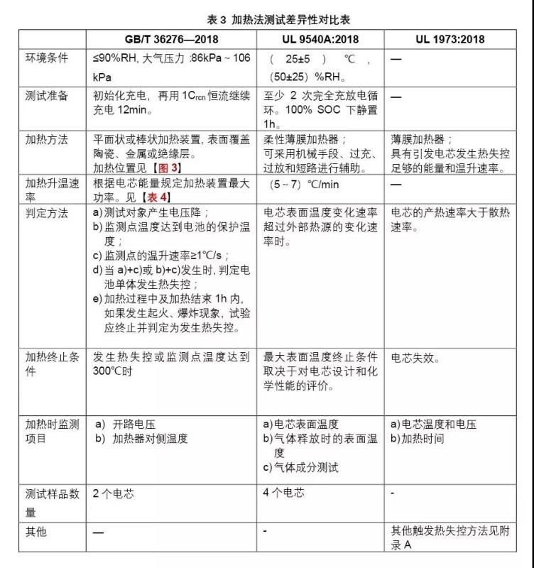 四、相關(guān)標(biāo)準(zhǔn)中有關(guān)熱失控及熱失控?cái)U(kuò)散測(cè)試方法對(duì)比