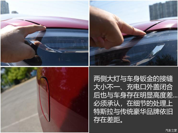 兩側(cè)大燈與車身鈑金的接縫存在不勻的問(wèn)題,充電口外蓋閉合后也與車身存在明顯高度差...如果仔細(xì)“找碴”,這樣的細(xì)節(jié)做工問(wèn)題在這臺(tái)提車?yán)锍虄H18km的試駕車上并不鮮見(jiàn),這對(duì)于一臺(tái)售價(jià)超過(guò)80萬(wàn)元的豪華車型來(lái)說(shuō)實(shí)屬不該。只能說(shuō)當(dāng)下的特斯拉相比傳統(tǒng)豪華品牌,在某些方面還是存在著一些不足的。