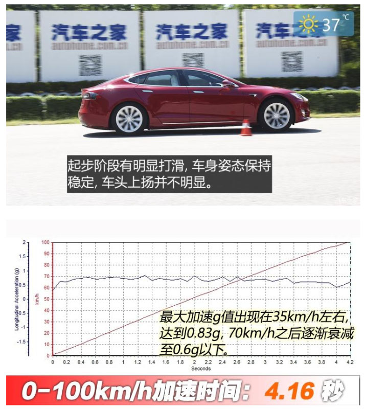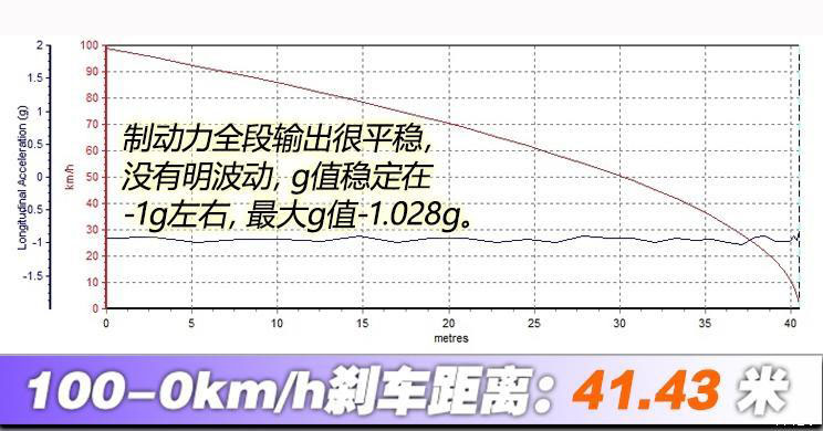 2、0-100km/h加速實(shí)測(cè)4.16s;100-0km/h制動(dòng)實(shí)測(cè)41.43m;
