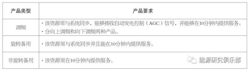 表1 加州傳統(tǒng)輔助服務(wù)產(chǎn)品種類(lèi)及要求