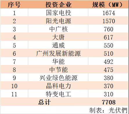 從企業(yè)申報(bào)規(guī)模來(lái)看,國(guó)家電投、陽(yáng)光電源成為最大贏家,入選規(guī)模均超過(guò)1.5GW,在光伏們的統(tǒng)計(jì)中,下表中十一家企業(yè)持有規(guī)模共計(jì)7.708GW,占比超過(guò)三成。