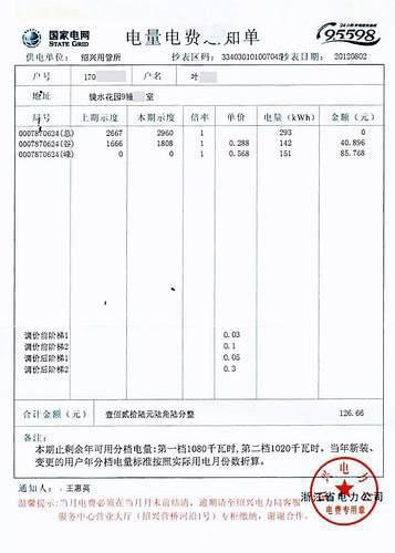 1997年5月,浙江市區(qū)居民照明到戶電價(jià)調(diào)整為0.53元,之后基本保持在這個(gè)價(jià)格上下。這張發(fā)票是2005年的,用電量峰谷合計(jì)217度,加上階梯累進(jìn)電價(jià)后電費(fèi)為104.76元,平均每度為0.482元。